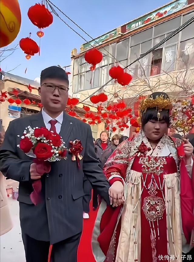 腊月二十六这天,朱之文的女儿把婚结了。她嫁的是菏泽本地的一个小伙子,俩人订婚是三个月前的事。看那些报出来的视频,新郎的样子和朱之文两口子之前说的对得上。他大概二十五六岁,脸上架着一副黑框眼镜。整个人看着挺斯文,感觉不怎么爱出门。村里人说他长相有福气。小伙子个子不矮,身子骨也结实,但往朱雪梅旁边一站,还是显得没那么壮实。俩人模样倒是挺配的。
